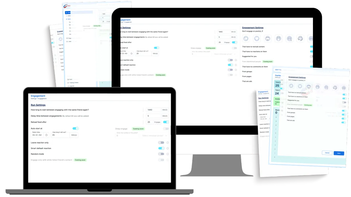 ✓ Deep Engagement - Have important people you want to connect with? With Deep engagement turned on, engager will not only react/comment on their most recent post but will go to their profile and react to the next number of posts you choose!